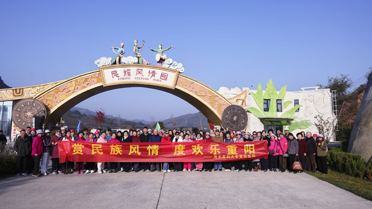 当日,阳光明媚,秋风送爽。老同志们怀着愉快的心情来到平山民族风情园。景区连山绝壁绿水轻舟花海飘香,古树奇石形态各异,可以领略到各个少数民族的独特建筑风貌。老同志们边参观边交流,共同追忆往昔岁月,在欢声笑语中感受自然之美,纷纷拍照留念,记录下这难忘的时刻。返程途中,大家仍意犹未尽地分享着收获与感受,表示此次重阳节游园活动不仅领略了民族风情与自然之美,更真切感受到了四院“大家庭”的温暖与关怀。